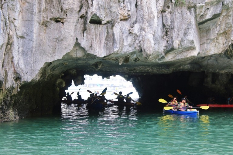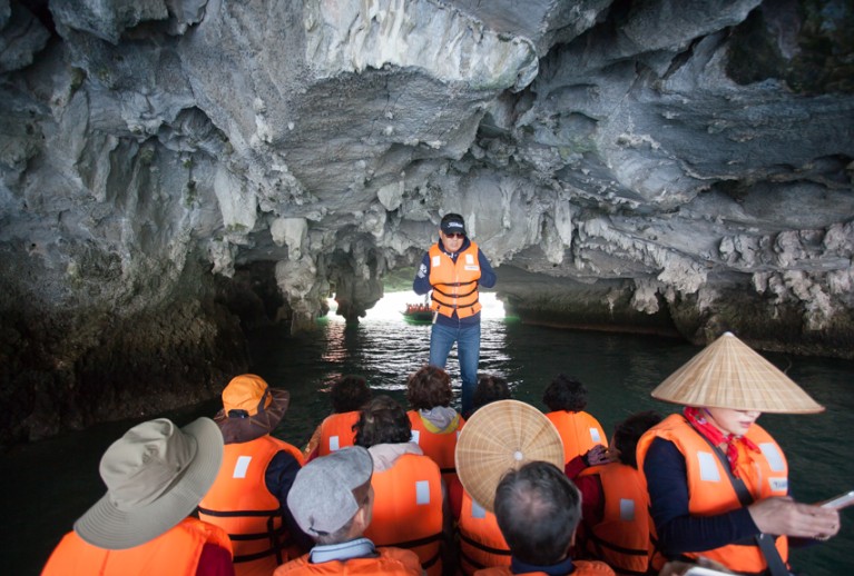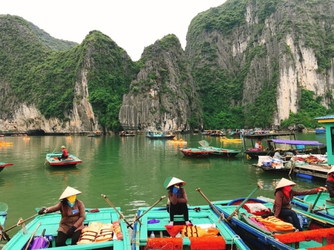: 하롱베이의 독특한 자연환경과 경관은 세계의 수많은 관광객들을 불러들여 작은 어촌마을을 이루고 살던 현지 주민들은 관광객들을 대상으로 수상 가옥 체험, 현지 어업체험, 동굴 관광, 그리고 보트를 구매하여 관광객들에게 하롱베이 비경을 돌아보기 등의 관광상품들을 개발해 관광 소득으로 대부분이 생활하고 있습니다