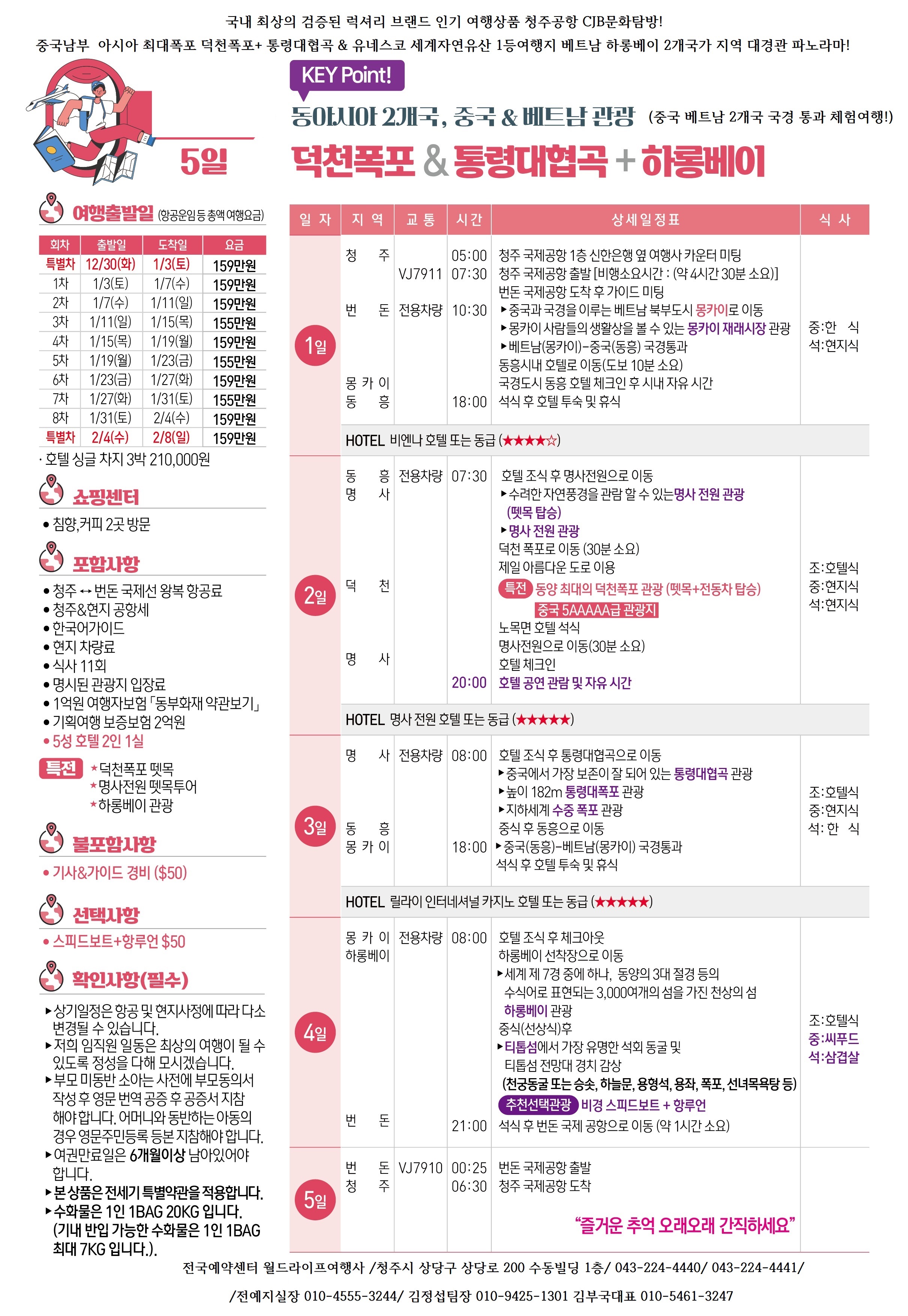 CJB문화탐방 청주공항 동아시아2개국 중국베트남여행 2026년 1월도 특별전세기 최적시즌 덕천폭포 통령대협곡+하롱베이