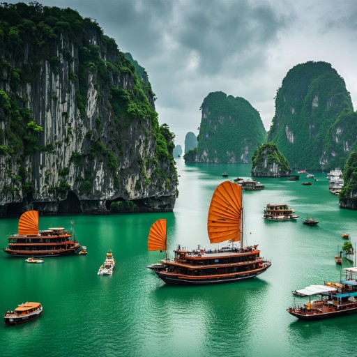 하롱베이의 보석같은 아름다운 섬들의 경이적인 바다경관의 대향연을 보시면