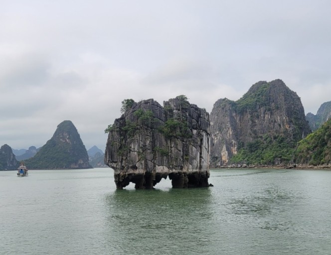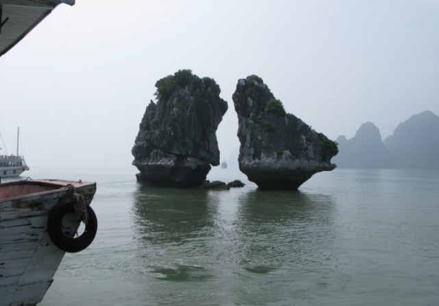 : 하롱베이는 중국 구이린과 비슷하지만 구이린(계림)은 육지위에서 수만년동안 융기와 침식으로 수많은 석회암 돌산이 조성되어있고, 하롱베이는 바다위에 뜬 셀 수 없는 수많은 기묘한 모습의 석회암 돌산이라 할것입니다, 이곳의 풍경은 마치 신선세계에 온듯한 몽환적인 기분이 드는 지상세계의 천국에 와있다는 기분이 들것입니다, 그래서 하롱베이 속으로 들어가 있으면 누구나 인간으로서 신선이 될것입니다!