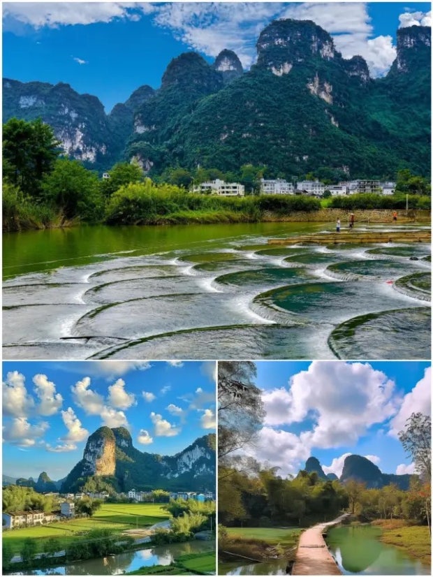 계림풍경보다 더멋진 명사전원 풍경구는 아름다운 남부 중국풍광의 정점을 찍고있고, 전동차와 뗏목을 이용한 편안한 관광 코스를 즐기다보면 자신이 바로 신선이 되어, 신선이 따로 없음을 느끼게 될것입니다, 기막힌 명사전원 풍경구안의 명사전원 호텔 베란다에서 보시는 경이적인 풍광은 바로 여기가 천국임을 느끼시게 될것입니다,