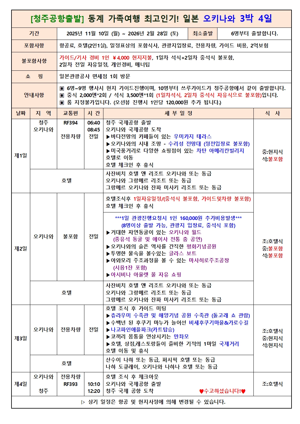 청주공항 오키나와 11-2026년 2월도기간 매일출발 동계최적시즌 진행 세계최고의 장수지역과 세계최상의 관광 컨텐츠 천국으로 가족여행 동계추천 여행지 전국예약센터 월드라이프여행사