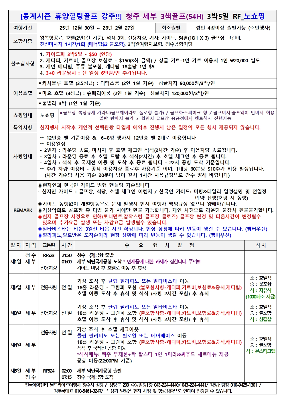 청주공항 세계가 인정한 가족 힐링여행지 세부 12-3월도 진행 전국예약센터 월드라이프여행사 김부국대표 0...