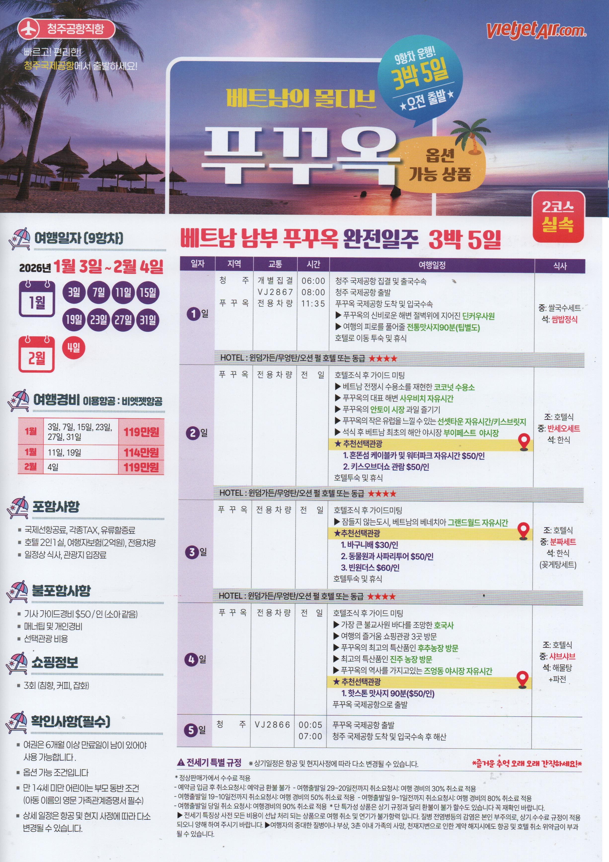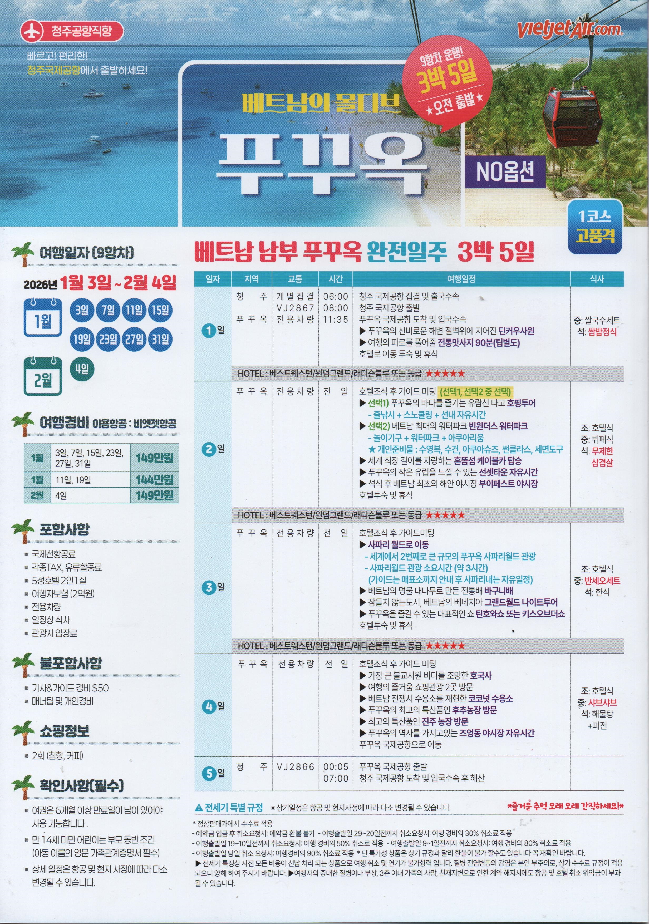 청주공항 동계 1월도 최적시즌 가족여행 최상 열광적 인기 럭셔리 여행일정 베트남 남부 푸꾸옥 완전일주 ...