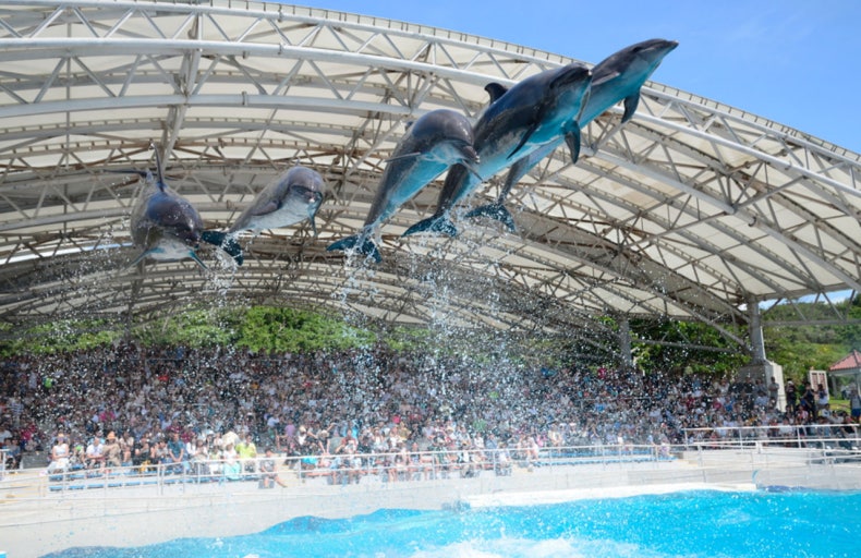 돌고래쇼( 하늘을 날라다는 돌고래 기예쇼는 경이적인 놀라운 공연이다!)