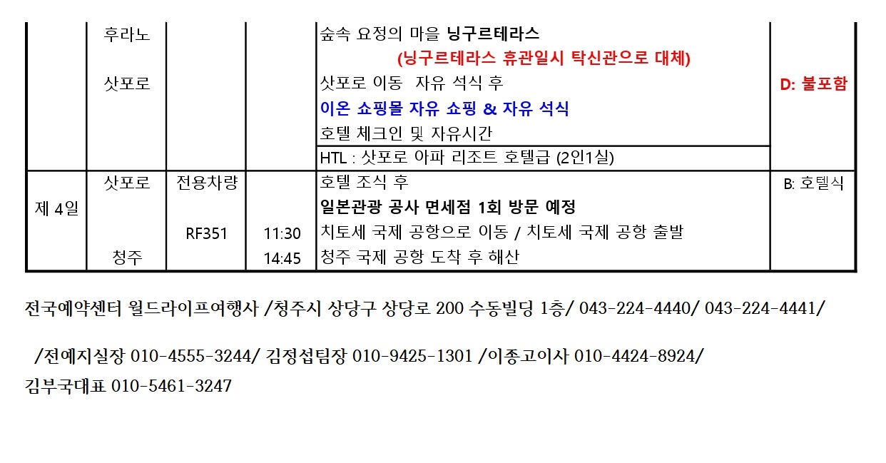 북해도여행 전국예약센터 월드라이프여행사 김부국대표 상담안내 010-5461-3247.