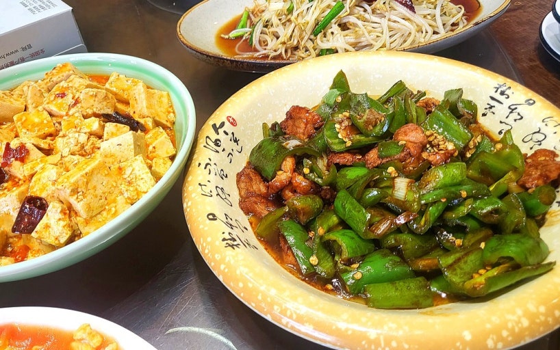 청도의 주요 상업 지구로, 다양한 상점과 먹거리가 있는 활기 넘치는 거리입니다.