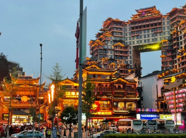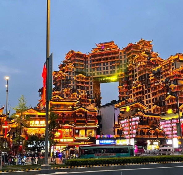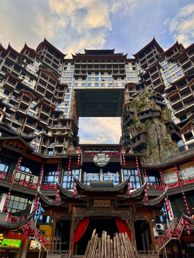 - 고대 전설을 현대적 건축 기술로 재현한 점에서 **"문화적 상상력의 구현"**으로 평가받는다. 장가계 관광의 새로운 랜드마크로, 낮에는 전통 문화를, 밤에는 화려한 조명으로 관광객을 매료시킨다 (지나가는 차창관광이지만 투어종료후 밤에 가이드와 협의하여 갈수 있다)
