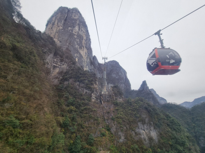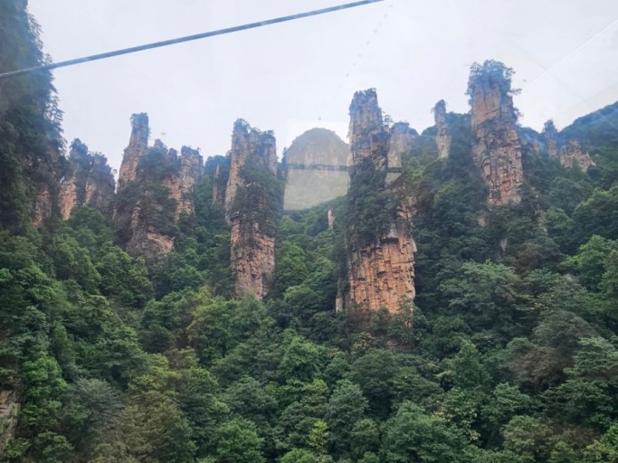 계곡을 따라 모노레일을 타고가는 동안 끝없이 펼쳐지는 절경에 경탄을 금치 못했다. 상상속에서나 볼수있는 갖가지 형상의 놀랍고 기막힌 형태의 봉우리가 무궁무진하게 이어지고 있었다. 상상을 초월하는 경치였다. 감탄과 감격으로 탄성이 절로나오는 절경은 이루 다 말로 설명할 수 없는 천혜의 경관이었다.