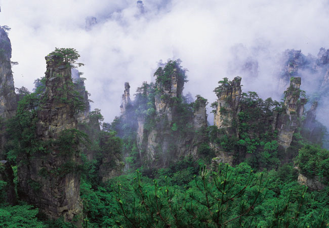 장가계지역 전체 풍경구의 면적은 264제곱키로에 이르고 그어디를 가나 사람의 눈을 의심하게하는 기괴한 봉우리가 수없이 치솟아 있는 모습은 자연의 신비감을 넘어 신에 대한 존경심까지들게한다. 대힛트한 3D영화 아바타의 배경을 가장 많이 촬영한 지역으로 장가계는 몽환적이며 희한한 모습을 연출하고있는 상상속에서나 볼수있으나 수많은 현상속의 실제 봉우리를 보게되면 신이만든 기묘한 마술을 바로 장가계에서 보고있다는 착각이 들 정도이다.