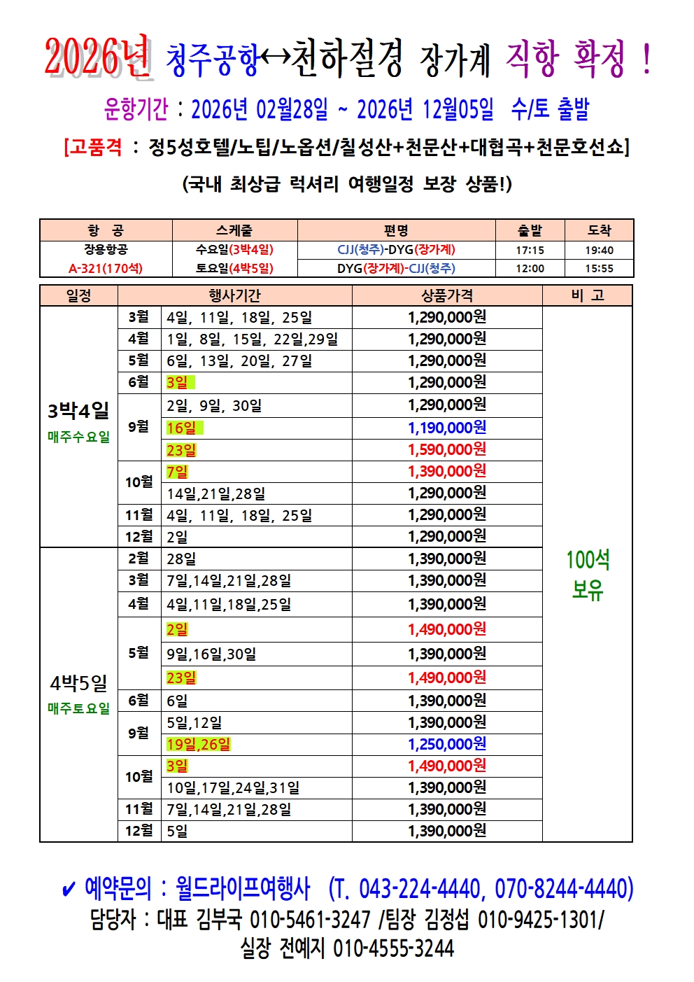 전국예약센터 월드라이프여행사 043-224-4440/ 김부국대표 010-5461-3247