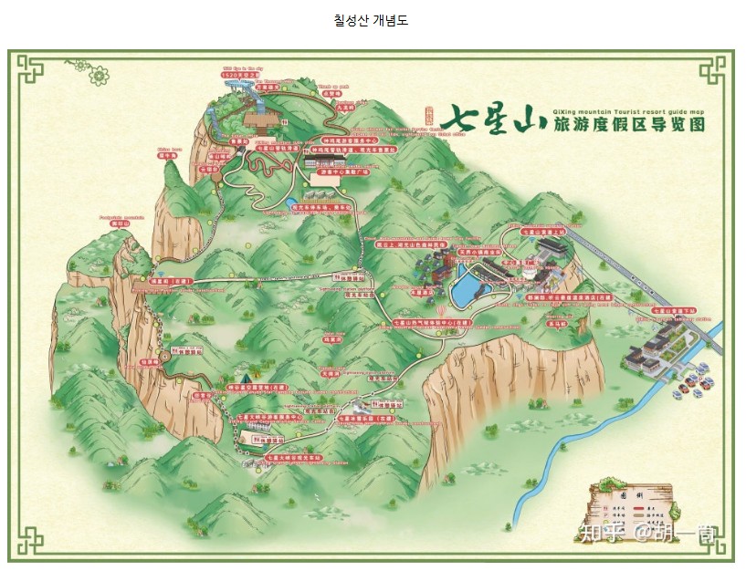 - **유래**: 7개의 봉우리가 북두칠성을 형성한다 해서 이름 붙여졌다. 도교에서 신성시하는 산이다. 긴 일정등에서만 일정상 진행하며 케이블카를 타고 오르며 전망대 올라 새롭게 별도 조성한 멋진 칠성산의 장관을 즐길수 있다,