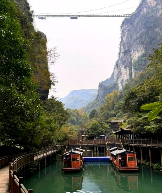- **인문적 의미**: 협곡은 고대 촉한(蜀汉) 시대 군사적 요충지로도 활용되었으며 협곡을 관통하는 트래킹은 장가계의 속살을 걸을 수 있고 유람선도 탈수있는 특별한 체험을 누릴수 있다, 또한 번지점프, 짚라인등 극한스포츠도 체험할수 있다,