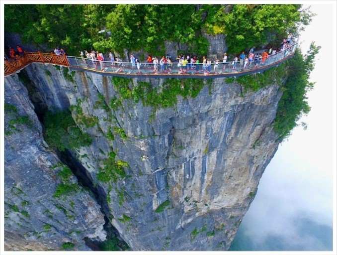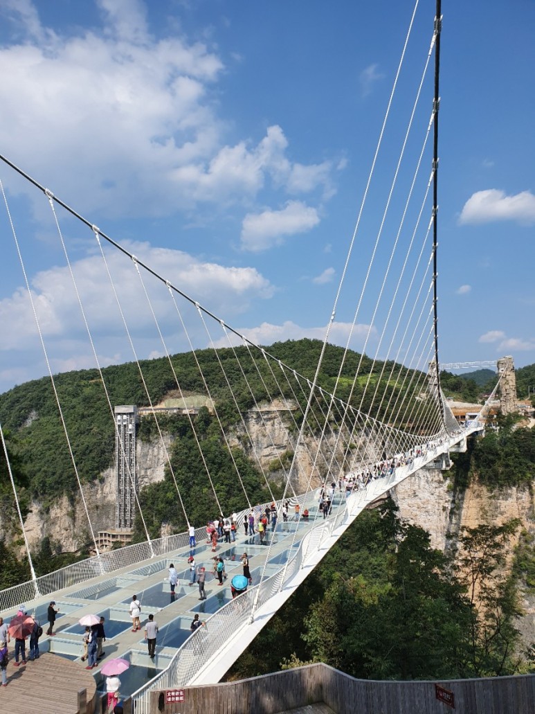 - **유리다리**: 세계 최장·최고의 유리다리로, 두려움을 극복하는 불교적 "선(禅)" 사상을 반영하며 산과 산사이의 깊고깊은 거대 협곡을 잇는 온바닥이 유리로 되어있어 건너면서 오금이 저리는 짜릿한 기분을 느끼며 바닥을 향한 인생샷도 찍는곳이다,