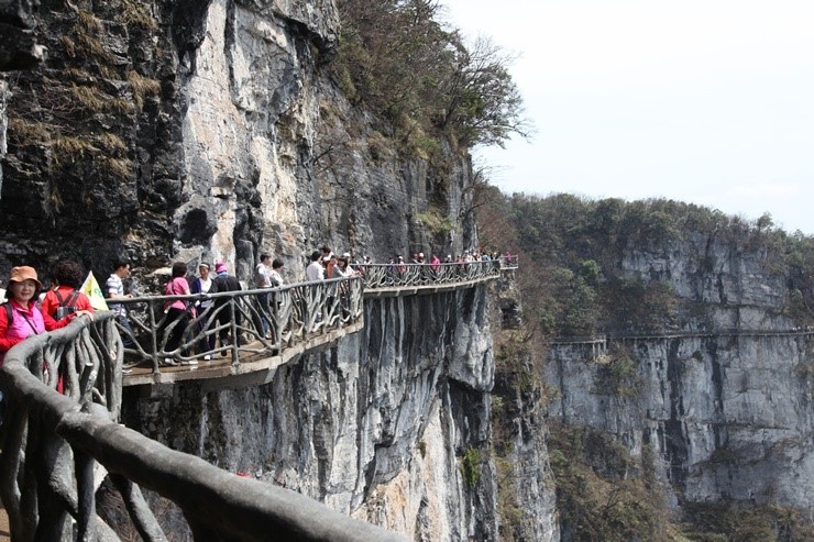 요즈음 한국에서 뜨는 트레킹코스인 올레길, 둘레길등과 같이 장가계 대협곡에도 트레킹 코스등을 다양하게 개발하여 진행중인데. 가파른 절벽 협곡에다가 건축이 전혀 불가능해보이는 나선형 계단길 조성 및 수백미터 절벽옆으로 붙여서 만든 잔도길의 트레킹 길을 만들어 놓았을뿐 아니라 높은 산위쪽으로 물을 인공적으로 끌어다가 엄청난 길이로 떨어지게한 멋진 인공 폭포(가이드가 얘기하지 않으면 모름) 만들어놓아 쏟아지는 시원한 폭포수를 보면 와우! 하는 탄성을 자신도 모르게 곳곳의 절경앞에서 절로 질러댈수밖에 없는 탁월하고 기막힌 여러 코스를 자연적인 놀라운 미가 수없이 존재함에도 불구하고 인공적인미 까지를 가미하고 응용하여 관광자원을 지속적으로 만들고 발굴하고 있다할것이다.