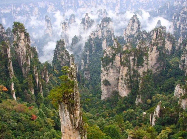 장가계지역 전체 풍경구의 면적은 264제곱키로에 이르고 그어디를 가나 사람의 눈을 의심하게하는 기괴한 봉우리가 수없이 치솟아 있는 모습은 자연의 신비감을 넘어 신에 대한 존경심까지들게한다. 대힛트한 3D영화 아바타의 배경을 가장 많이 촬영한 지역으로 장가계는 몽환적이며 희한한 모습을 연출하고있는 상상속에서나 볼수있으나 수많은 현상속의 실제 봉우리를 보게되면 신이만든 기묘한 마술을 바로 장가계에서 보고있다는 착각이 들 정도이다.